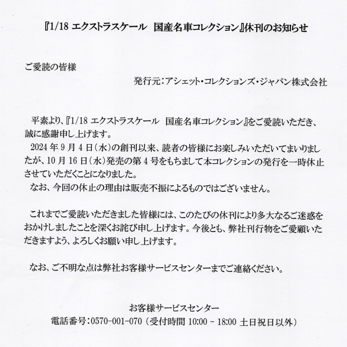 2018年9月27日朝に何気なくTVを見ていたら、アシェット・コレクションズ・ジャパンが「隔週刊ルマン24時間レースカーコレクション」を発売中とのCMが。調べてみると、5月から6月にかけて一部地域で試験販売していたのを、9月26日から全国販売を開始したようである。