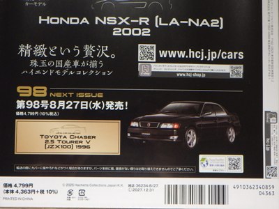 家族が書店に勤められているホンダ仲間のN君に協力していただいて入手できた。 2017年4月発売のNo.16のNA1が3,990円、2022年5月発売のvol.147のNA2タイプRが4,073円、今回のNC1が4,499円と着実に値上がりしているが、このスケールのダイキャストモデルとしては良心的な価格。 |