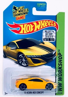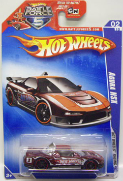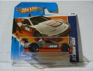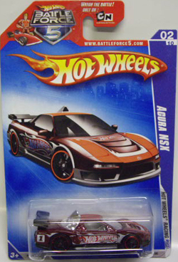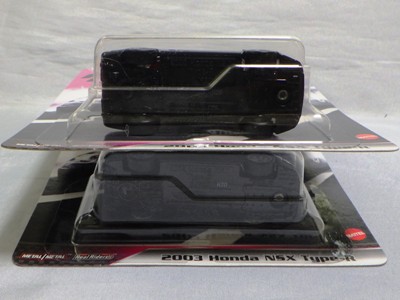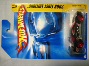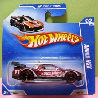 HOTWHEELS(マテル) 1968年にアメリカ・マテル社のミニチュアカー部門として設立され、独自の世界観を構築しているブランド。日本車もその豊富なラインナップの中に多く含まれますが、2007年末にホワイトパールの派手なアキュラNSXがラインナップに加わるまで、NSXが取り上げられたことは一度もありませんでした。では、なぜ2005年にこのコーナーを作ったかというと、レギュラーモデルの1種である「2005ファーストエディション」のNo.10として、次期NSXのコンセプトモデルと称され、2003年の東京モーターショーでデビューした「アキュラHSCコンセプト」が2005年7月にそのラインナップに加わったため。ちなみにHSCという名称は「ホンダスポーツコンセプト」の略。NSXを正常進化させたデザインです。 基本的にアメリカでブリスターパック入りで販売され、その後、カードの裏面に日本語のステッカーを貼ったり、日本語のカードを新たに製作したものが正規輸入品として日本に入ってきます。アメリカでは何台かをまとめて箱入りで売られているものもあります。ショップやコレクター個人が並行輸入してアメリカ版のパッケージのまま流通している商品も多いです。ショートカードと呼ばれる縦が短いカードは、基本的にヨーロッパで販売されているものらしいです。 |