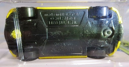 2017年5月21日ヤフオク初登場。 その最初の1台を落札したため2,600円と少々高い買い物となった。 大量に出回るようになれば、すぐに1,000円を切ってくることだろう。 リアフェンダー前の下部にHWのロゴマークが入るのはイエローモデルと同様。 パッケージ裏面の刻印は「0797N」。 モデル裏板の刻印は「K12」。 |