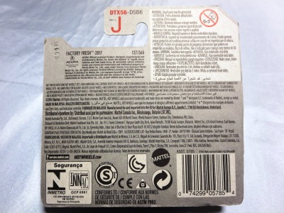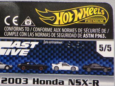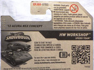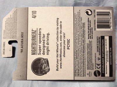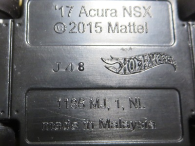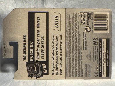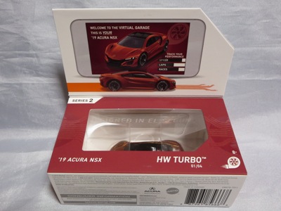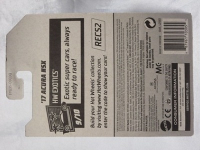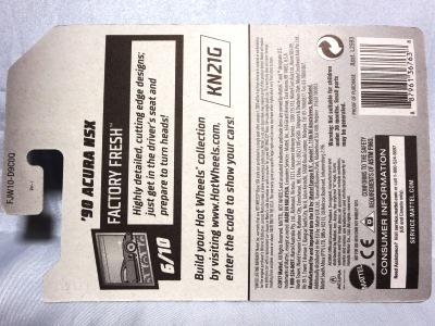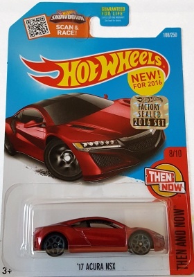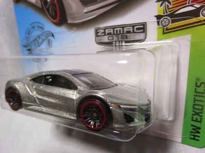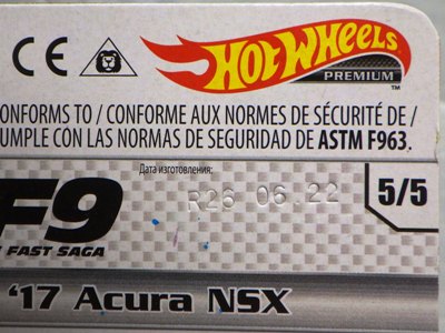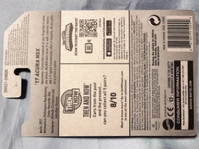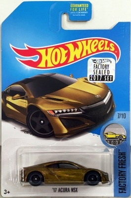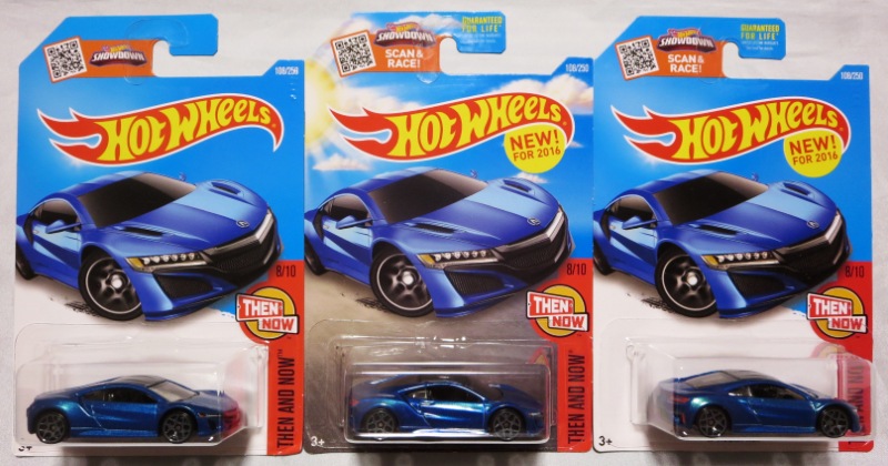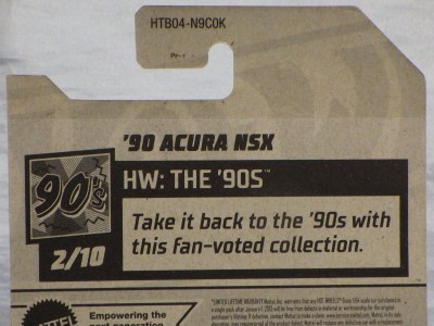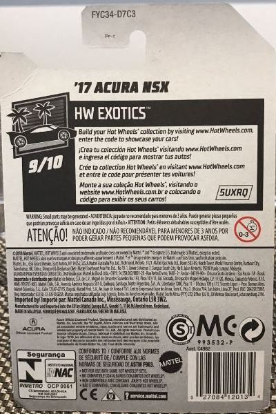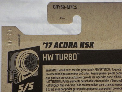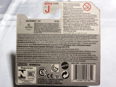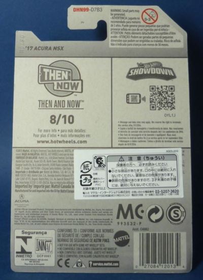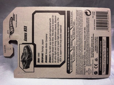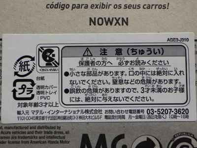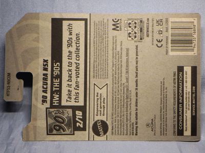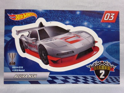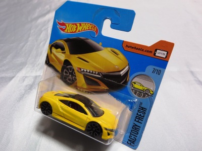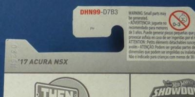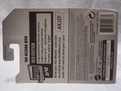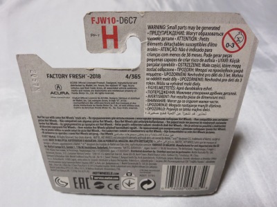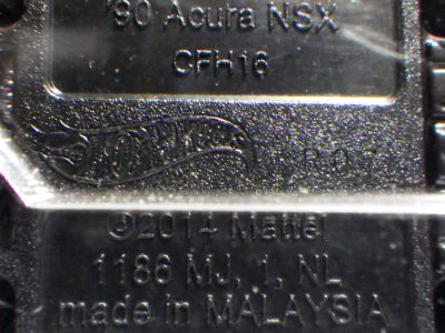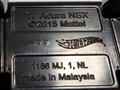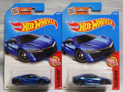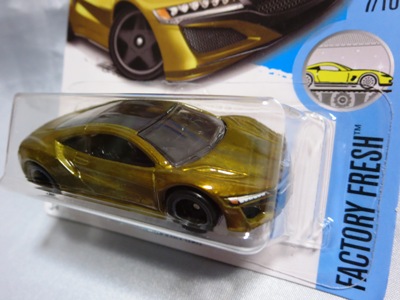 2018年4月28日にヤフオクに初登場した「MONTH2018」のシールの貼られた「’90ACURA NSX SILVER」を落札し入手。 2017年9月に「'17ACURA NSX YELLOW」で、同様のデザインの「MONTH2017」マークがパッケージにプリントされたものを入手したことがあるが、これはプリントではなく、シールが後から貼られている。 出品者によれば、アメリカのWALMARTで購入したもので、シールの位置はランダムだったとのこと。 7月に別の出品者から同じ入手して、それを確認した(購入したものはコレクション数にはカウントせず)。 どちらの商品もカードナンバーは「FJW10-D9C0Q」。カード刻印は「1917N」で、裏板刻印は「K29」だった。 |