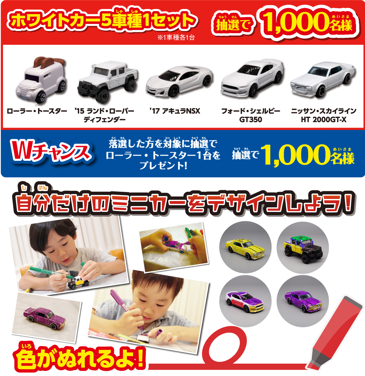 2012年12月12日ヤフオク初登場。 ボディカラーはメタリックレッド、内装はシルバーメッキ、ボディ下部はブラック。 ボンネットとドアに「CAO」のロゴ、ゼッケンNoは「5」。 ショートカードがAmazonで売られていたが未入手。 これを含む5台セットも12,750円で販売されていたが未入手。 カードの品番は「X1749-07A3」。 カードの刻印は「2862N」。 裏板刻印は「E42」。 |