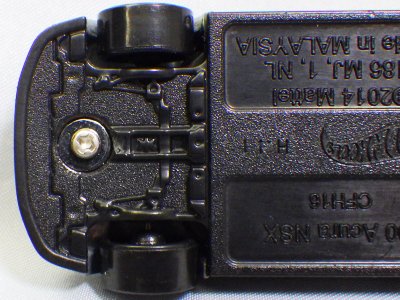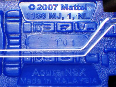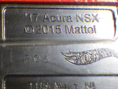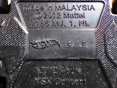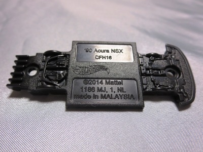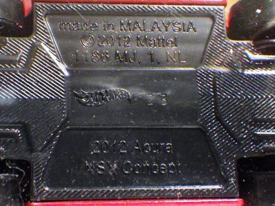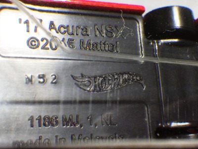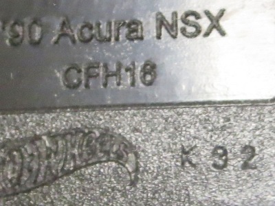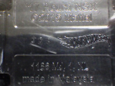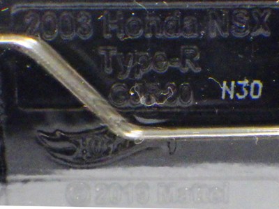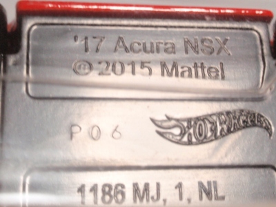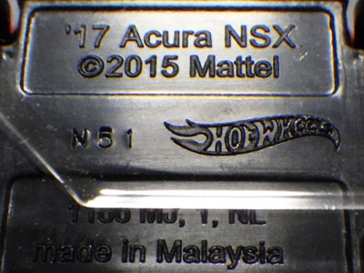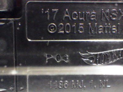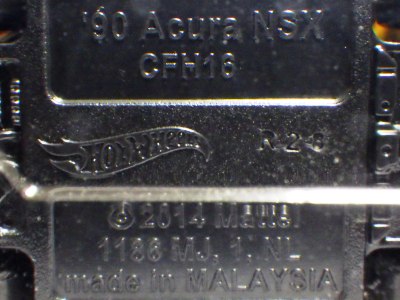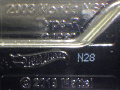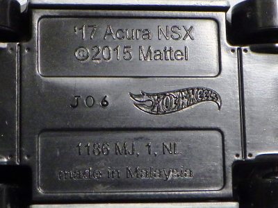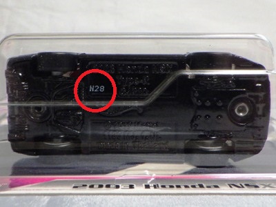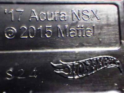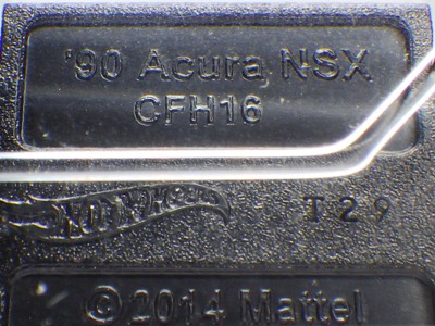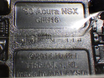 | 2017年2月8日にヤフオクに登場したパッケージなしのルース品を落札。ヤフオクで毎日欠かさずチェックしているNSXと違い、HSCは長い間、全くのノーチェックだったので、いつ頃発売されたのか、どのようなパッケージに入って販売された商品なのかは全く分からない。ただ、モデル裏板の刻印は「E50」 となっていることから、アルファベットは発売年、数字はその年の週を表しており、2008年が「A」、2009年が「B」…となっているらしいので、「E50」は2012年の50週目、つまり12月の中旬に製造されたことを表していると見てよい。ちなみに、このアルファベットのルールは「H」で表される2015年まで続いたのだが、なぜか「I」が飛ばされて、2016年モデルは「J」で表現されている。数字の「1」と見分けが付きにくいからであろうか。 |