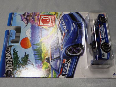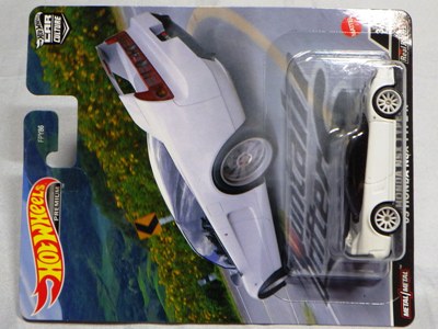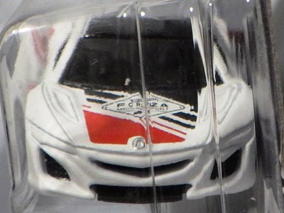 2020年4月19日ヤフオク初登場。 初登場品は1,500円で落札されたが、2020年5月中旬に相場が1,000円を切ったところで落札して入手した。 なお、落札時においても正式には日本未発売で、個人輸入したものがヤフオク等で少数流通している。 1990年代の鈴鹿サーキットのセーフティカーをモチーフにしているのは明らかで、ドアに描かれたコースも鈴鹿そのもの。 ボンネットのグリーンのRマークもそのままだが、さすがにサーキット名は「RYULA」という架空の名称がプリントされている。 裏板の刻印は「N08」。 カードの型番は「GHC32-D9C0K」。 カード裏の刻印は「02-20」。 |