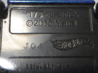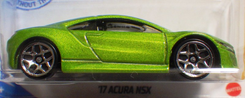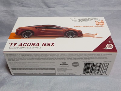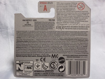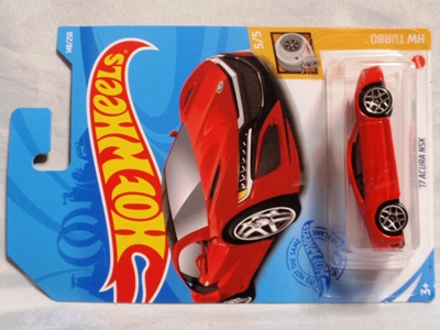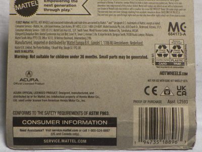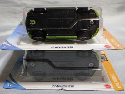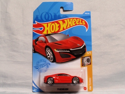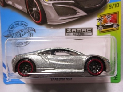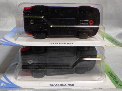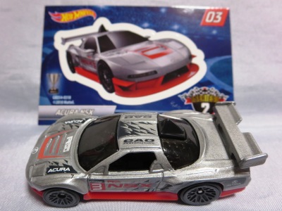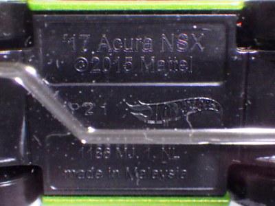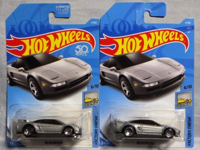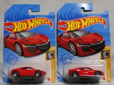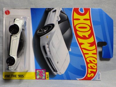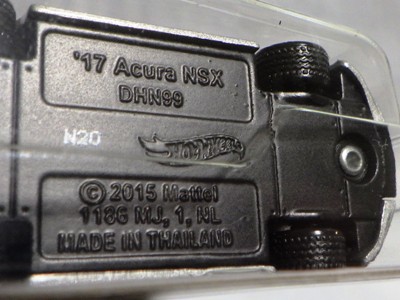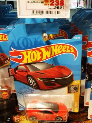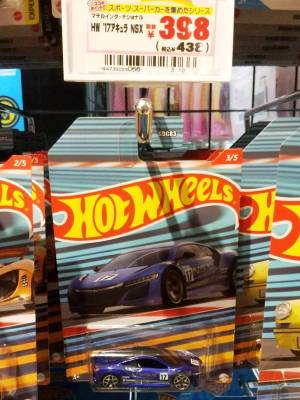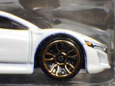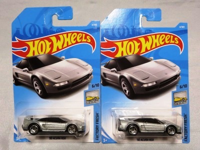 2020年4月19日にヤフオクに初登場した鈴鹿サーキットセーフティカー仕様のカラーバリエーションで、2020年9月30日にヤフオク初登場。 クロガー限定モデルということで海外から出品された。 過去にディスカウント百貨店チェーンのターゲット限定モデル、スーパーマーケットチェーンのウォルマート限定モデルがあったが、クロガーもアメリカのスーパーマーケットチェーン。 2020年10月に、福岡のW氏がアメリカ・オハイオ州から取り寄せた「Hot Wheels 2020 Kroger Exclusive White 90 Acura NSX Lot Of 4 JDM」を分けていただいた。 価格は送料込みで1台当たり1,068円。 裏板の刻印は「N28」。カードの型番は「GHG58-D9C0P」。 カード裏の刻印はなし。 |