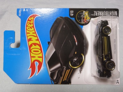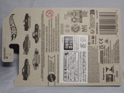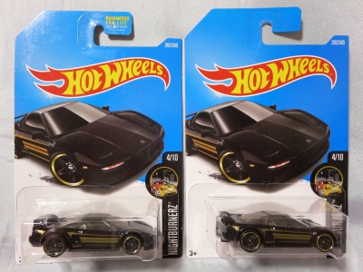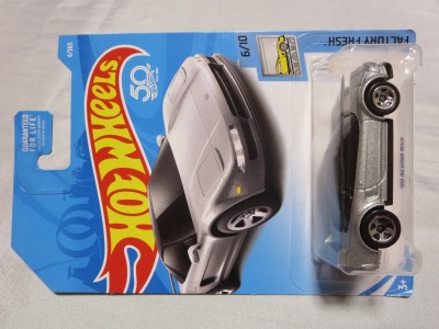 2017年8月29日にヤフオクで海外からの出品を確認。9月26日に国内からの出品を確認し、国内での正規販売前ながら、10月に入って相場が下がったところで購入。 リアのナンバープレートにホットウィールのロゴが入るが、あまり鮮明ではない。 カード裏の刻印は「1987N」、ミニカー裏板の刻印は「K29」。 |