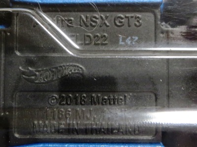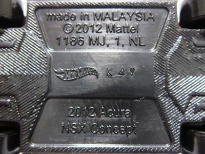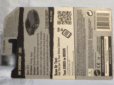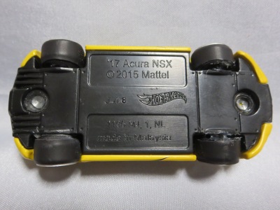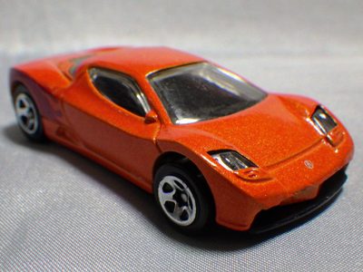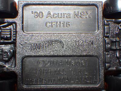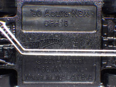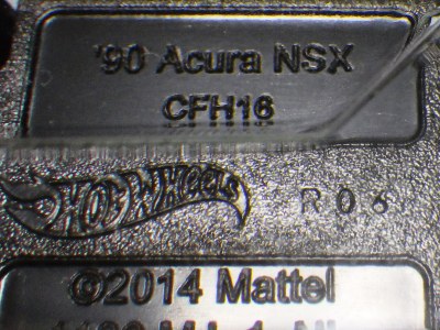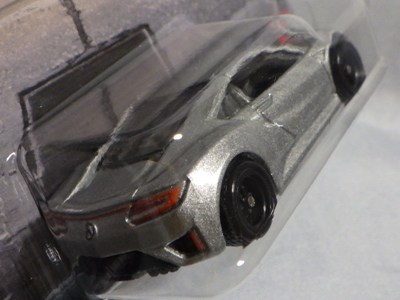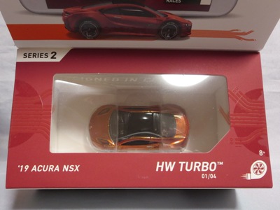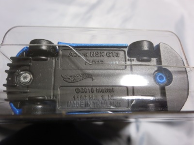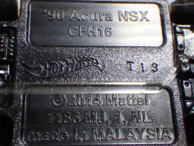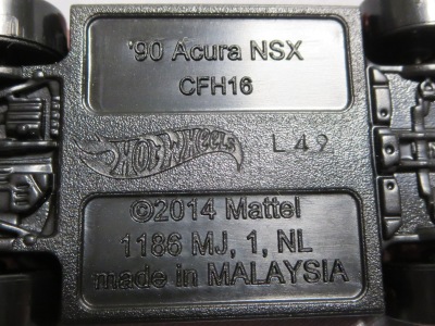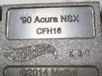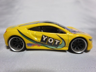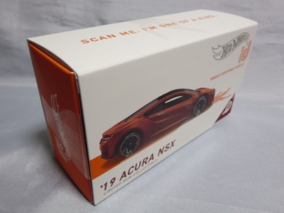 2014年にリリースされたミステリーモデルズ限定バージョンのオレンジモデルを2024年9月にヤフオクで入手。 2008年に登場するアキュラNSXのカスタム仕様シリーズにもこのようなブラインドパッケージのミステリーモデルズは存在したが、覗き窓付きの親切設計だった。 こちらは完全ブラインドとなっているため、欲しいモデルを引き当てるのが困難。 シールが付属している。 HSCシリーズは、このモデルから、マレーシア製からタイ製に変わっている。 商品名に「NSX」という名称がないため、毎日のヤフオク検索に引っかからず、入手まで10年もの時間がかかってしまった。 |
