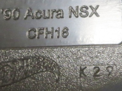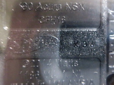 2019年11月14日にヤフオクに出品された「'90ACURA NSXシルバー」の国内販売版を入手。このシルバーは、これまでカードバリエーションで5種入手していたが、日本語のシールの貼られた正規輸入版は未入手であった。 最初期のD7C3カードに日本語シールの貼られたものはヤフオクで見たことがあり、画像も上で紹介しているが、この入手品は50周年ロゴ入りカード。所有済みのシールなし50周年カードがD9C0Aなのに対し、このカードはD9C0Bカードである。 出品者の方の説明によれば、「USカードに日本版表記が混在しているエラーカード」とのこと。50周年カードに日本語シールが貼られて国内販売されることは通常ないということか? 最近のモデルでは見られなくなったカードの刻印は、「2477N」で、ミニカー裏板の刻印は「K36」。 |