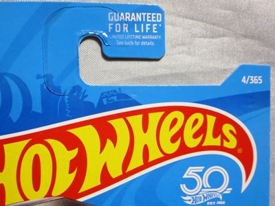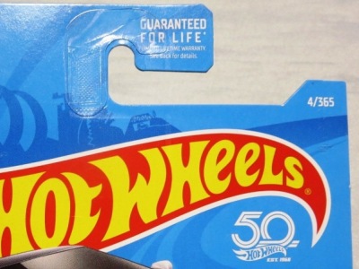 2017年11月、50周年記念ロゴが入った3つ目のカードが登場していることが判明して入手。フック部分に「GUARNTEED FOR LIFE」の文字が追加され、裏面デザインや型番も変更になっている。ヤフオクで確認するとアメリカからの初出品が11月16日、日本国内での初出品が11月19日だった。ちなみに50周年を迎えるのは来年の2018年で、これまで40億台以上を製造したとのこと。 刻印は過去入手の「1987N」「2197N」と異なり「2127N」。 問題はミニカー裏板の刻印で、最初に入手したものが「K29」、次に入手したものが「K32」だったが、今回の商品は「K31」と製造時期が遡っている。イエローモデル同様に、必ずしも製造時期が古いミニカーからパックされているわけではないということだろう。 |