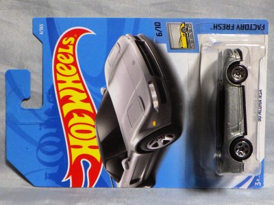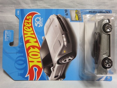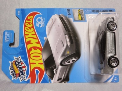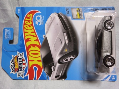 2016年12月8日ヤフオク初登場。2017Dアソートの1台。2016年11月28日にツイッターに画像をアップしている方がおられるので専門店ではもっと前から入荷しているようだ。Dアソートは全29種で、NEWモデルが4種、STH、THが各1種ずつとのこと。 2017年1月にヤフオクにてやっと入手。まだヤフオクへの出品5、6台目だったが、早くも600円台で安定(1,2台目1,100円、3台目1,400円)。コレクターは専門ショップでさっさと購入していると思われる。 リアフェンダー前の下部にさりげなく入ったHWのロゴマークがイイ感じ。パッケージ裏面の刻印は「2836N」。モデル裏板の刻印は「J42」。 |
