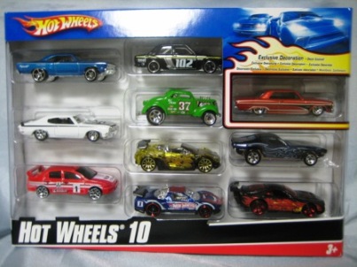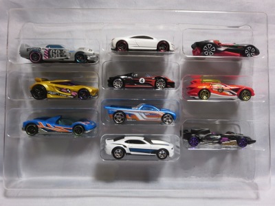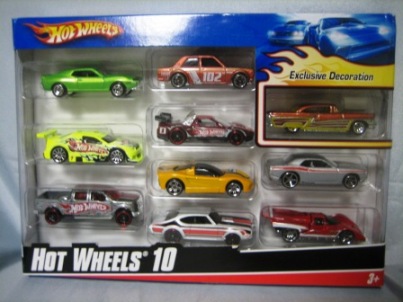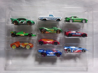 2009年9月1日ヤフオクに初登場。 赤モデル初のセット物。 同時期に発売された金モデル2台セットに同梱されているダットサンブルーバード510など10台が収められている。 |