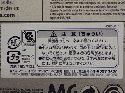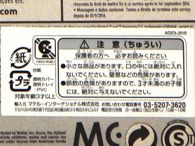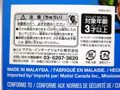 2022年5月18日amazonでの取り扱い開始。 トイザらスオンラインストアに6月7日に注文(送料が600円もかかるが、確実に正規品を購入したかったため。amazonは送料込み385円と安いが海外パッケージの可能性もあるので。) 発売日の2022年7月2日に届いた。 裏板の刻印は「R12」、カードの型番は「HHF18-M910G」。 左の画像は中国版との比較。オモテ面は全く同じである。 後日同じ商品を入手したが、カードの型番は同じで、裏板の刻印は「R11」だった ので、新グッズとしてカウント。 |