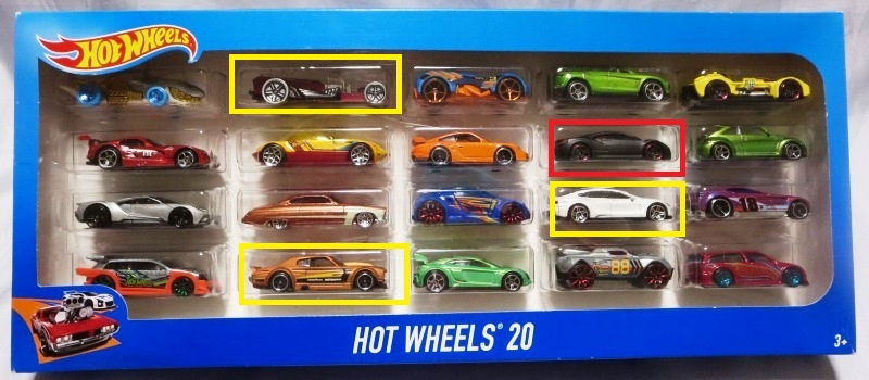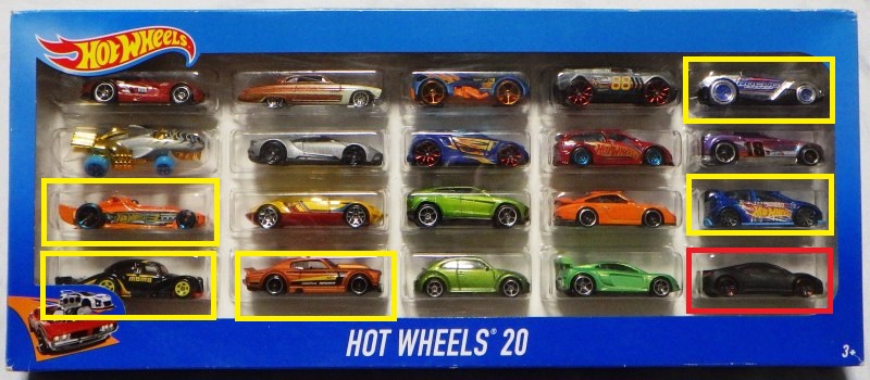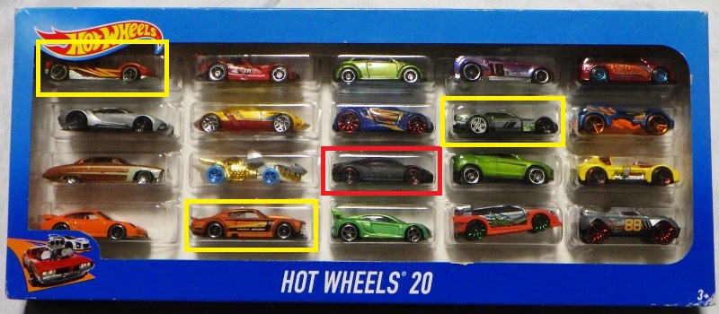 。2019年発売のマルチパック限定モデル。 この初登場モデルのルース品は1月22日に2,400円で落札終了した。 e-bayでは安価にかなりの数が出回っているので、ヤフオクでも同程度の相場に下がるのを待っていたが、2019年7月にアメリカのコレクター仲間が送ってくれたトレード品の中に、このオレンジモデル入りのマルチパック9が入っていた。 また別にパックからバラして販売されていたルース品も一緒に送ってくれたので撮影用に重宝した(マルチパックが未開封品で開けたくなかったので)。 このルース品はコレクション数にはカウントしていない。 ミニカー裏板の刻印は「L49」で、2018年49週目の製造ということなので、2018年12月3日〜9日の週の製造である。 |