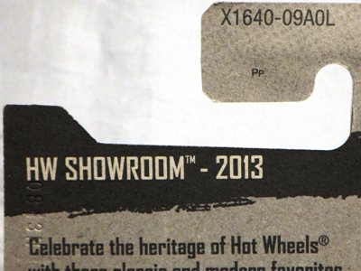2009年3月16日ヤフオク初登場。 '70ダッジチャレンジャーとの2台セットで、ホットウイールを15ドル以上購入した場合2ドル分の割引があるクーポン券付き。 カードの品番は「J6510-B919」。 カードの刻印は「3548N」。 裏板刻印は「A51」。 |
