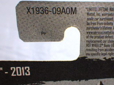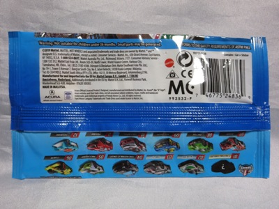2017年4月1日ヤフオクに初登場。 カードデザインが異なるだけでミニカーは同じもの。 ノーマルカードの初登場が2009年7月で、マテルが「バトルフォース5」のアニメ放送を開始したのが2009年8月なので、この商品もその頃の発売と思われる。 カードの品番は「P2388-AB19M」。 カードの刻印は「1579N」。 裏板の刻印は「B23」。 |