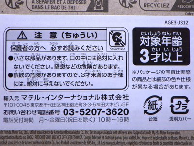 | 2008年6月購入。 2008年3月頃発売。 4月にフランスのコレクターより入手した商品の正規輸入版で中身は同じだがパッケージが異なる。 しかし日本専用パッケージというわけではなく日本語表記は追加シールにあるのみ。 |