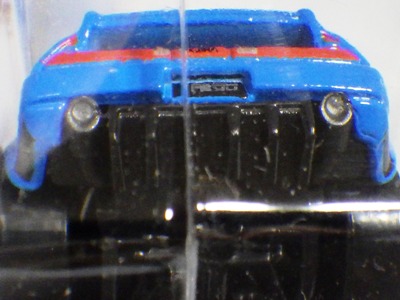 2007年からは更に希少性を高めた「スーパートレジャーハント」シリーズが登場しており、これ以降の「トレジャーハント」シリーズは若干入手し易くなった模様。 このブルーモデルは2015年10月3日にオークション初登場。 半月で結局4台が出品された。 ブリスターパックの中にトレジャーハントを示す炎のマークがプリントされている。 ボディはカラーのみならず、ホイールの形状、タイヤの材質(溝付きのゴム製に)が変更され、リアバンパーにはスーパートレジャーハントの証しである「TH」ロゴが入る。 裏板刻印は「H36」、パッケージ刻印は「2365N」。 2015年12月12日にショートカード版も登場するが 、その時は落札できず後日入手。 |