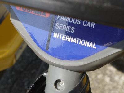 鈴鹿サーキットにも同じ物が置いてある。電動タイプも存在したらしいが、たまにヤフオクに出る足踏み式と違って、全く見かけない。トシマは埼玉のメーカー。全長92cm。 後日当サイトを見た方が、この商品の箱を譲ってくださったのだが、箱だけ送っていただいたため、宅配業者の方が、あまりの軽さに戸惑っていたのが印象的だった。 |