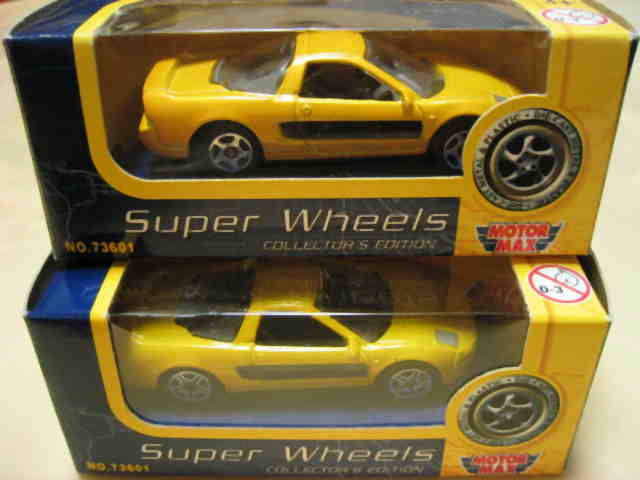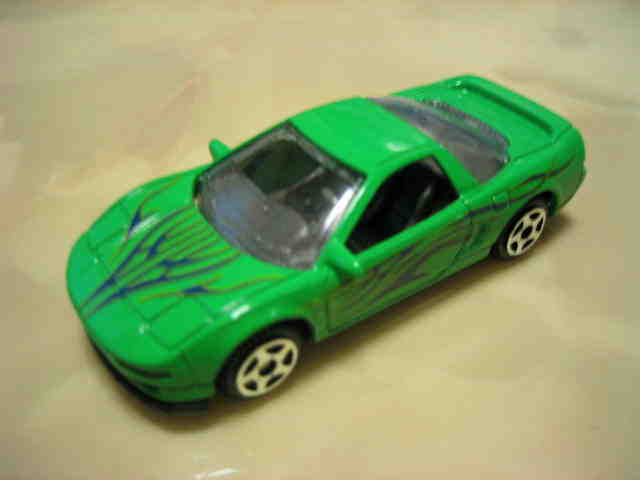 | 2006年1月国内のトイザで購入。50台の中に6台セット同様にドアの凹部の黒塗装がなくなった新タイプのNSXが含まれる。ホイールは5本スポークタイプ。セットの中にはモーターマックス以外のチープカーが多数見られる。 | |