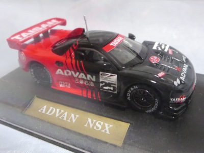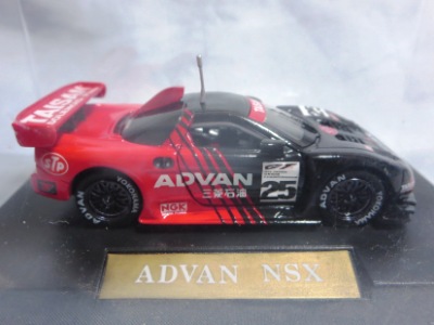| 2017年1月オークションにて入手。プレートに「ADVAN NSX」、パッケージ裏面にも「ADVAN NSX JGTC2003」と手書きのシールが貼られているが、そもそもこのカラーリングのNSXは2003年のJGTCには参戦して おらず、これは1996年に参戦していたリトラクタブルライトのNSXのカラーリングである。 | |||