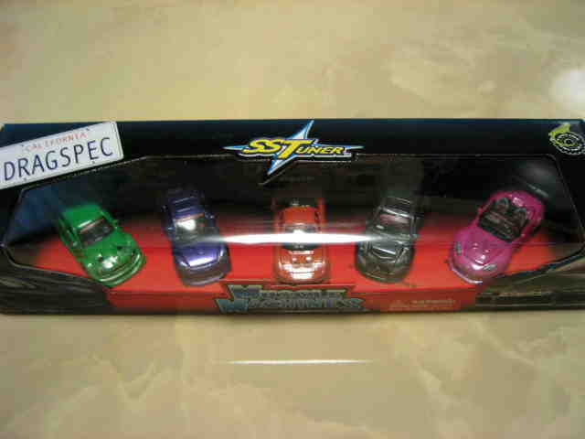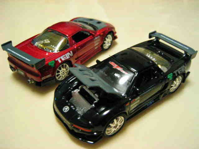 | 04年5月13日発売。左からアルテッツァ(白)、RX-8(青)、NSX(黄)、ランエボZ(黒)、S2000(赤メタ)。 | 04年5月13日発売。左からアルテッツァ(緑)、RX-8(紫)、NSX(オレンジ)、ランエボZ(ガンメタ)、S2000(ピンク)。 | ||