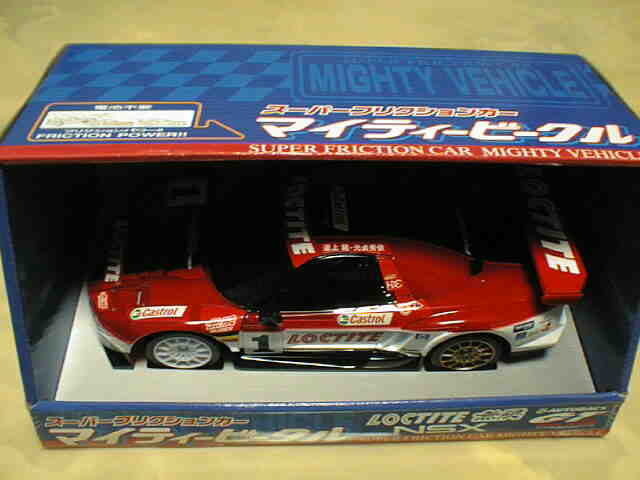| 2002年7月下旬登場。アミューズに続く5番目のパッケージ。ロックタイトしか見かけなかったので、このパッケージで販売されたのはこれのみかも。全長105mm。 | もともとラジコンだったものを、低年齢児用の玩具としてプルバックカー化したもの。ラジコンと異なり後期型に仕様変更されている。トイザ価格999円。スケールは1/20。 | ||