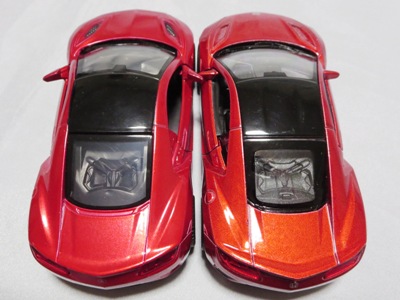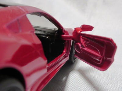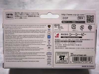 のと思われる。 1/32の「ピピットキー」や「モーターライズド・タッチ・コントロール」と比較すると明らかに小さ く、1/36のRMZ Cityか1/39のWELLYのOEM品だろうと予想していたら大ハズレ。1/39のWELLYとは、サイズがほぼ同じで、両ドアのみの開閉ギミックとプルバック機構を搭載している点も共通ながら、細部を見れば明らかに違う商品であることが分かる。メタリック塗装の粒子もWELLYは粗め。 キャストビークルの方がWELLYよりドアの開閉範囲が広めだが、WELLYはドアの内貼りを樹脂パーツで再現しているのが○。 一方キャストビークルのドアの内貼りはドアと一体成形で再現 されており、ボディ同色のままなのでリアリティに欠ける。 裏面については、ほぼフラットなWELLYはもちろん 、それなりにディテールのあるRMZCityよりもモールドがしっかり入っている。中央にCAIPOのロゴがある。元々CAIPOというメーカーのMSZというシリーズのようで、Amazonには同じようなCAIPOダイキャスト製プルパック カーが並行輸入品という扱いで多数出品されている(しかしほとんどが品切れ状態)。 ボディは台紙にネジ止めされているが、小さい子供向けの玩具にネジ止めはいかがなものだろうか。 シーシーピー公式サイトを見ると最初に6車種が発売され、その後、NSXを含む8車種が追加されたことが分かる。 2018年9月2日に鈴鹿サーキットで865円にて販売されているのを確認(ピピットキーシリーズも販売されていたがNSXは売り切れたのか見当たらなかった)。 |