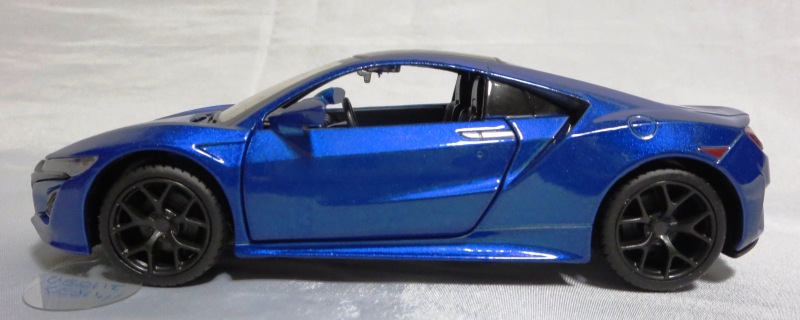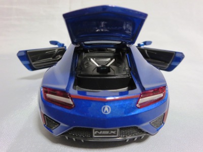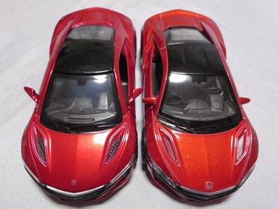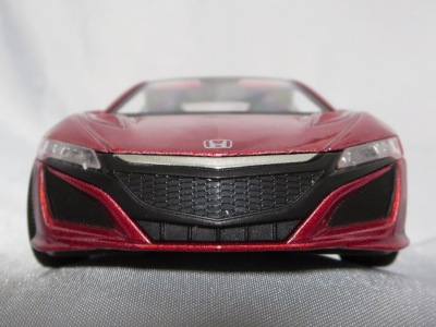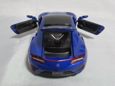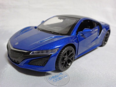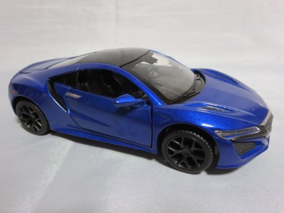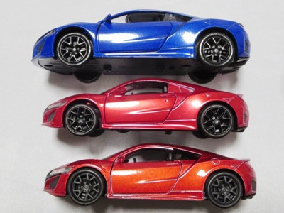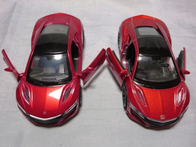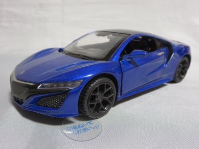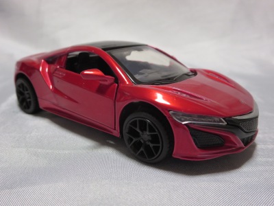 2018年1月25日からAmazonで予約が開始され、3月中旬に発売された(2月24日発売と記載されたショップもあり)。「ピピットキー」は2014年からシーシーピーで販売されているシリーズで、NSXはアウディR8LMSと共に追加された。 届いた商品を観察したところ、2017年9月にヤフオクに初登場して入手した、B.A.R.T.E.R.香港Limitedの「モーターライズド・タッチ・コントロール」(日本未発売)と同じボディ(1/32スケール)を使用していることが判明。 ただし、「モーターライズド〜」ではブラックアウトされていたコクピットが再現され、ハメ殺しだった両ドアとリアハッチが開閉可能となっており、プルバック走行も可能となっている。 その他のギミックの違いを比較すると、「モーターライズド〜」が、サイドウインドウをタッチするとヘッドライトが点灯してエンジンがかかるサウンドが鳴り響き、フロントウインドウをタッチするとヘッドライトが点灯して派手なエンジンのサウンドが鳴り響きリアタイヤが回転し前進、リアウインドウをタッチするとヘッドライトが点灯し、これまた派手なスキール音を鳴り響かせながらリアタイヤが回転して後退するというギミックを内蔵していたのに対し、本商品は、ボンネットを押すことでヘッドライトが点灯し、エンジン音が鳴ってキーリモコンでの操作が可能になり、キーリモコンでロック音・エンジン音・クラクション音をヘッドライト点灯と同時に鳴らせるようになる。 1/36のRMZ Cityや1/39のWELLYと並べてみると一回り大きいのが分かる。 |