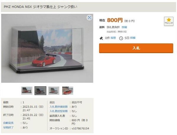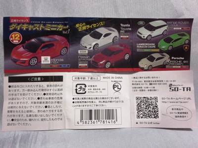 2018年10月28日にヤフオク初登場のRMZ Cityの現地箱入り新型ホンダNSX2色セットを落札できなかったことにショックを受けていたところ、翌日、ヤフオクでカプセル玩具のダイキャストミニカーが出品されているのを発見。カプセル玩具をメインとした新興の企画製造メーカー「SO-TA」の商品で、10月5日発売