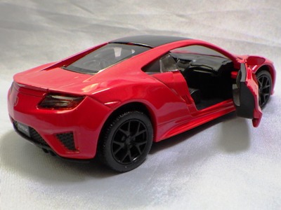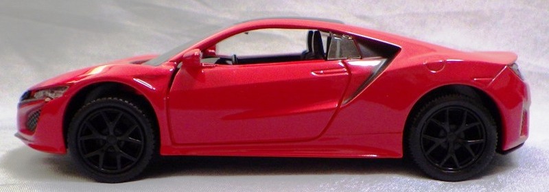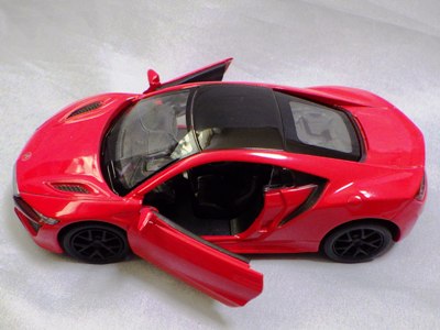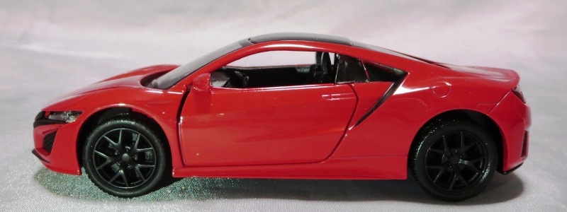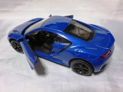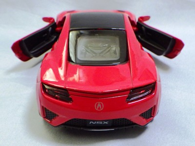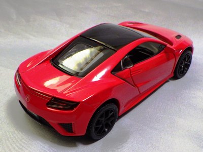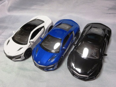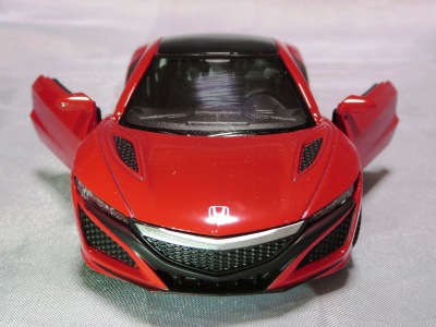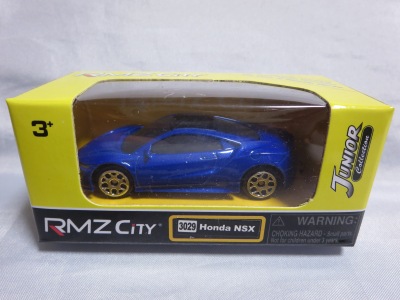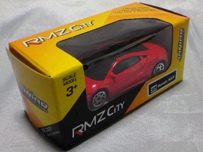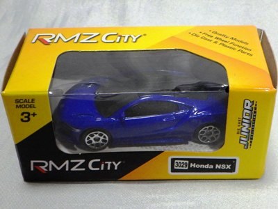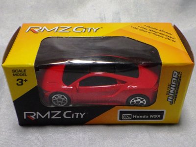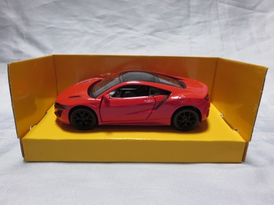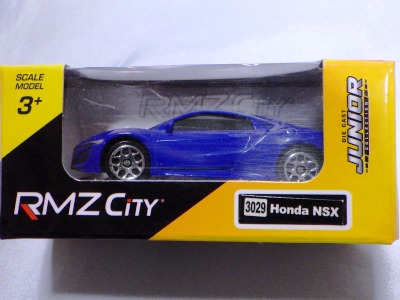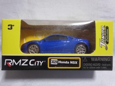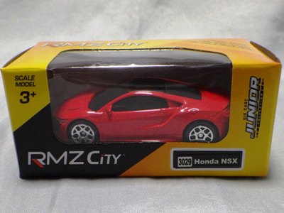 2017年4月8日にヤフオクにブルーが初登場したRMZ City製の1/36新型NSX。その後、ホワイト、レッド、ブラックも出品。 現地では赤いパッケージに入っているようだが、ヤフオクに出品されているRMZ Cityのミニカーのパッケージのほとんどが黄色で(これらは1/64か?)、青色が少々。ヤフオクで出品されたNSXはすべて箱なし。 2017年6月23日にジョーゼンから日本語パッケージでレッドのみ正規発売開始。定価は950円だが、Amazonプライム価格は782円。なぜか左ハンドル仕様。 ちなみにAmazonのレッドモデルの画像ではメッキホイールが装着されているが、実際にはブラックモデルのみメッキホイールで、あとはブラックホイールである。 2024年6月21日に、ホンダ公式ウェア&グッズオンラインショップに他のジョーゼン製のミニカーやラジコンと共にラインナップされた。 |