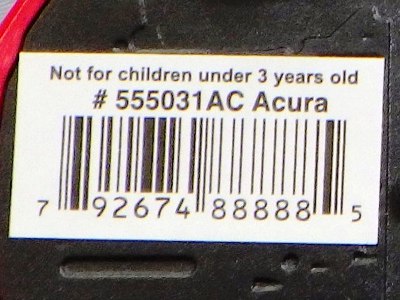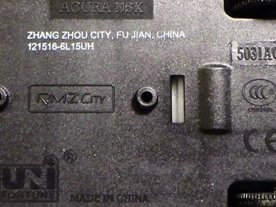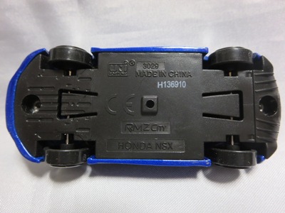 やっと入手できた。 箱なし。 エンブレムはアキュラで、裏板の刻印も「ACURA NSX」となっているが、ホンダ仕様と同じく左ハンドルである(本来ならホンダ仕様が右ハンドルであるべき)。 |