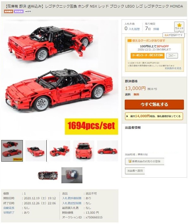 ▲2020年12月19日に神奈川からヤフオクに出品された海外製のレゴ互換商品。