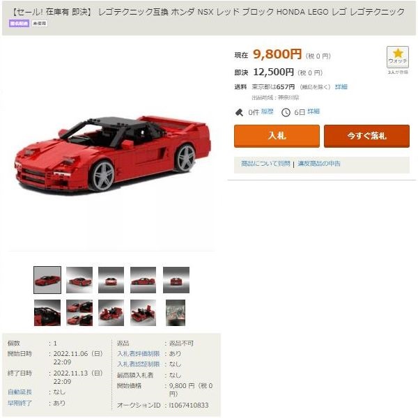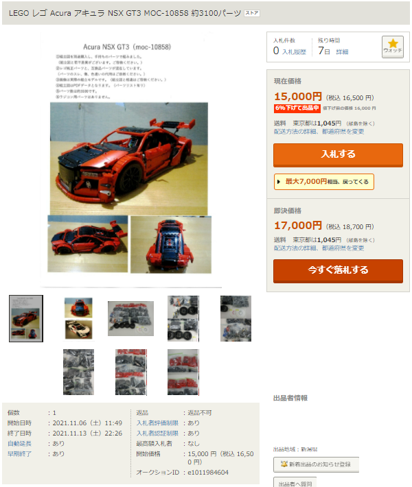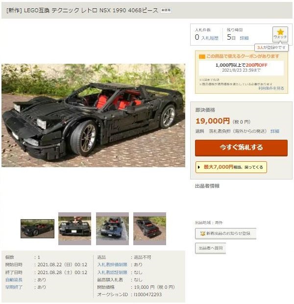▲2021年8月20日と22日に続けてヤフオクに出品されたレゴ互換品。22日の出品商品は即決価格が