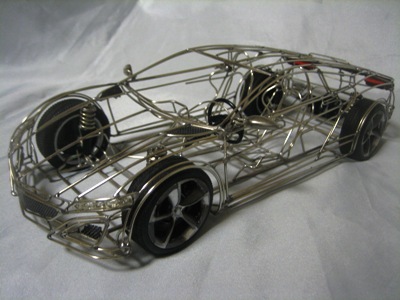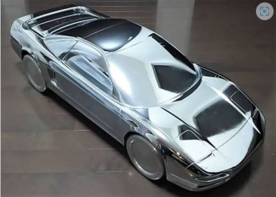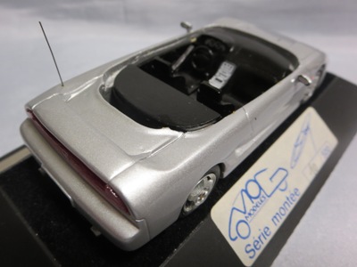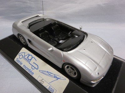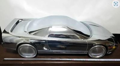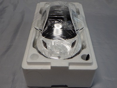 | 2013年8月16日にM・Y氏がオークションに出品されたものを落札。 サイズは260mm×120mm×75mm。素材は洋銀で、ライトやレンズ類はガラス製。ジャーマンシルバーとも呼ばれる洋銀のワイヤーをフルポリッシュし立体表現した作品で足回りやエンジンなど省略した外郭試作モデル。フルスクラッチによるハンドメイド作品で今回限りのスポット製作となり、オークション向けの作品は基本的に「1車種1作品製作」のため今後の製作予定はないということで少々無理して落札したが、M・Y氏が私のことを覚えていてくれて光栄であった。市場に良くある1/18スケールのダイキャストモデルより大きくリアルさが味わえる。 | |||