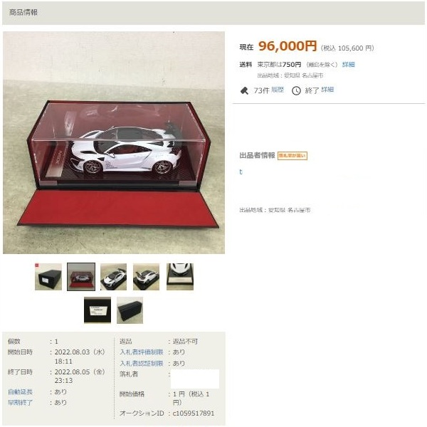 10台限定とはいえ開始価格13万円では全く手が出せず。D&Gは超高級ミニカーブランドでNSXが数種リリースされて