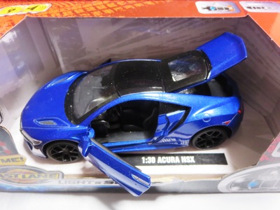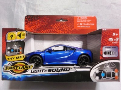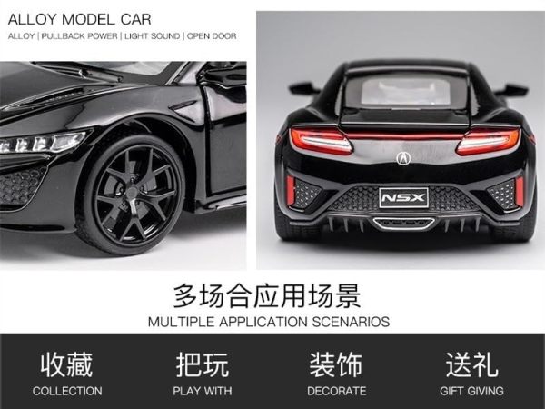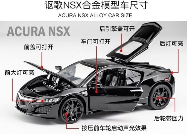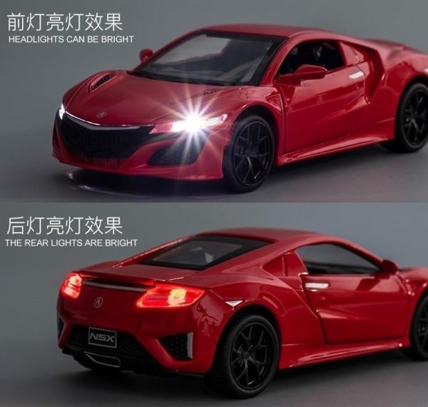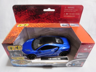 「ダイキャストカーモデル アキュラNSX シミュレーション音と光プルバックギフト」。ギミック多数だが高い。