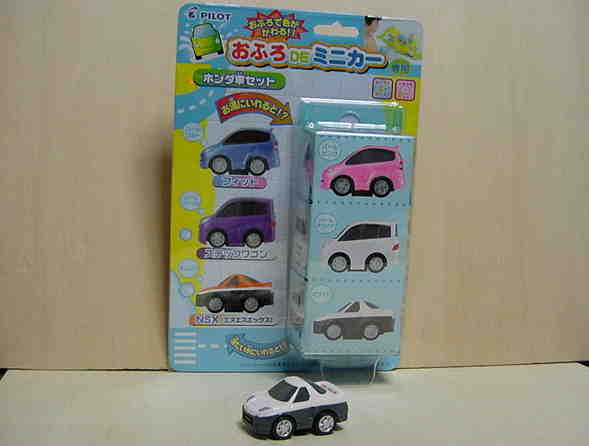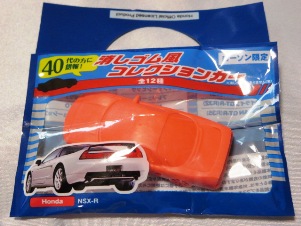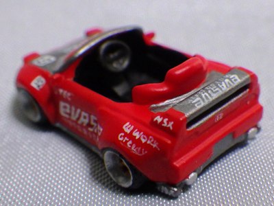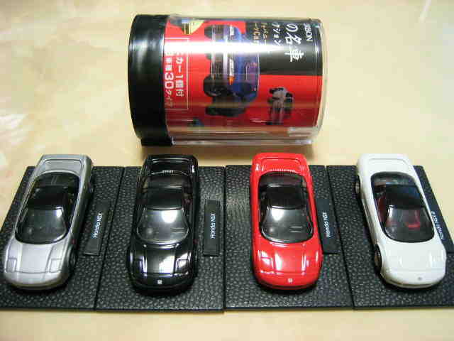 | 2006年1月16日発売の食玩。シークレットを含めて全16種。カラーバリエーションを含めると全20種。No.06がNSXで、12個のパーツを自分で組み立てるタイプ。完成すると全長4.5cmとなる。ナンバープレートもプリントされるなど、なかなか細かい。 | |||