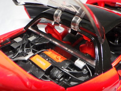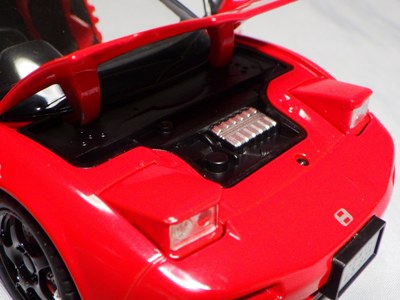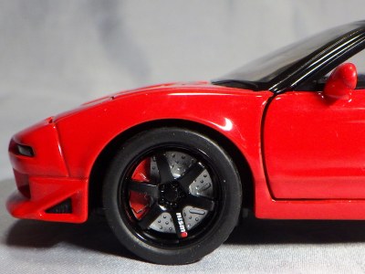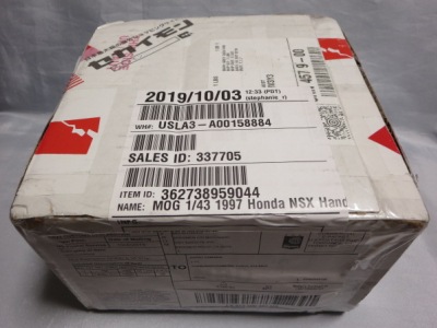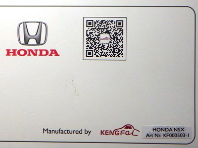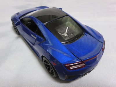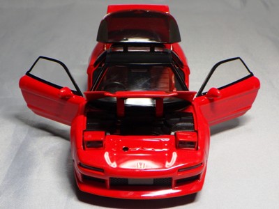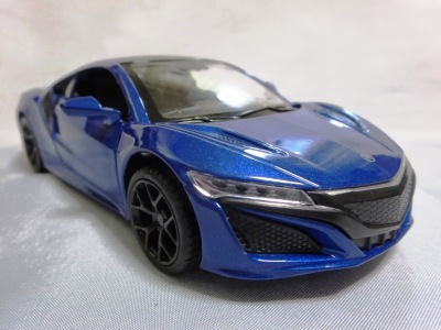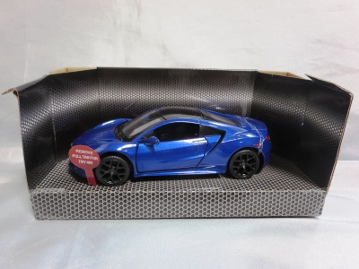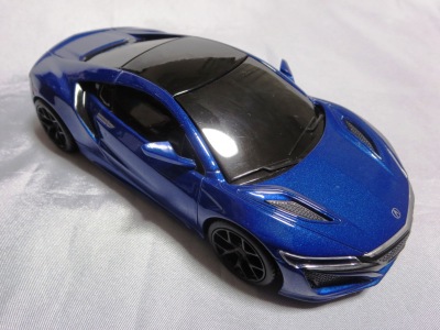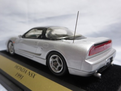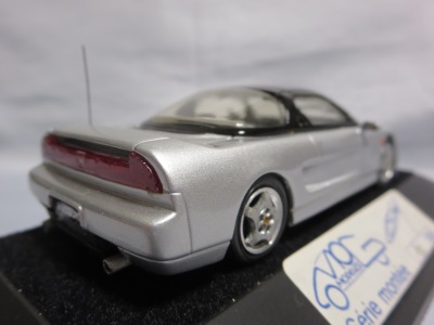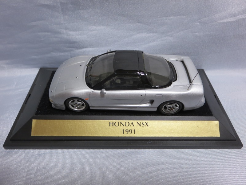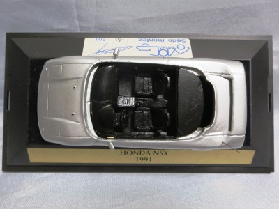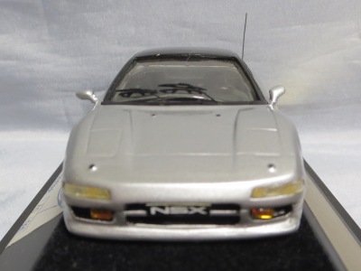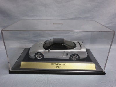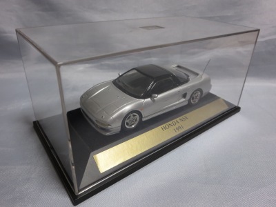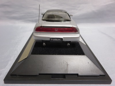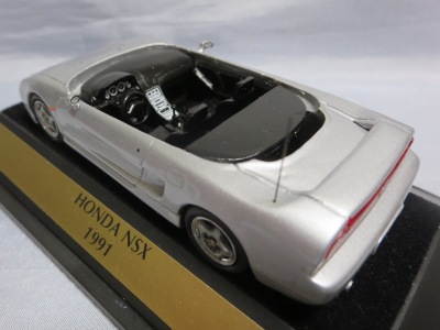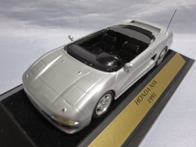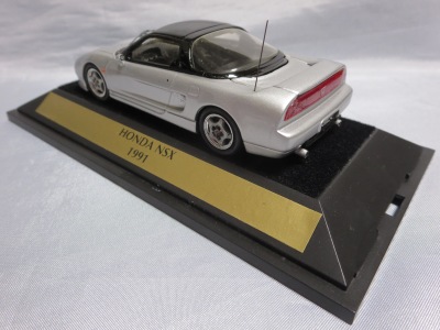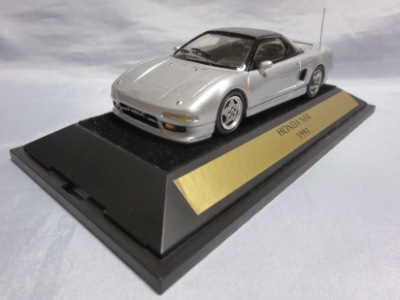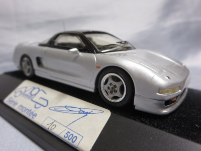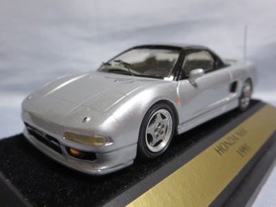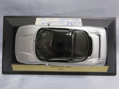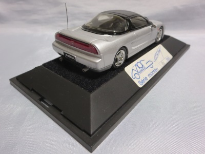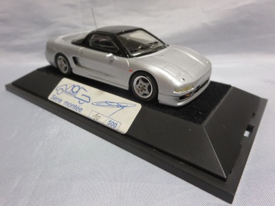 2019年9月18日にヤフオク初登場。その日のうちに即決落札し、10月21日にやっと届く。 500台の限定品で台座にシリアルナンバーが入る。 3Dスキャンによる技術で製作されたリアルな最新ミニカーを見慣れた目には、あまりにゆるいディテールに驚かされるが、それはそれで味わいがある。 キャノピー部やリア周りはよくできているが、ボディは上下にやや厚みがあり、サイドダクトもやや小さい。ノーズも短く、全体的にずんぐりむっくりな印象。 キャノピーが取り外せたので(単なる破損か?)内部も撮影できた。 ホンダのエンブレムが付いているが、アキュラ同様左ハンドル仕様になっている。これは、ヨーロッパでは日本と同じ右ハンドル・左走行なのはイギリスだけで、フランスもそれにならっており、アキュラのディーラーがフランスには存在しないためである。 (アキュラブランドが展開されている国は、アメリカ・カナダ・メキシコ・中国・ブラジルのみで、ロシアにも2014年に進出したが2016年に撤退している。) ワイパー、ホイール、マフラーは金属パーツを使用している 。台座はドイツを代表する1/87ミニカーメーカーのヘルパのものが使用されている。 |
