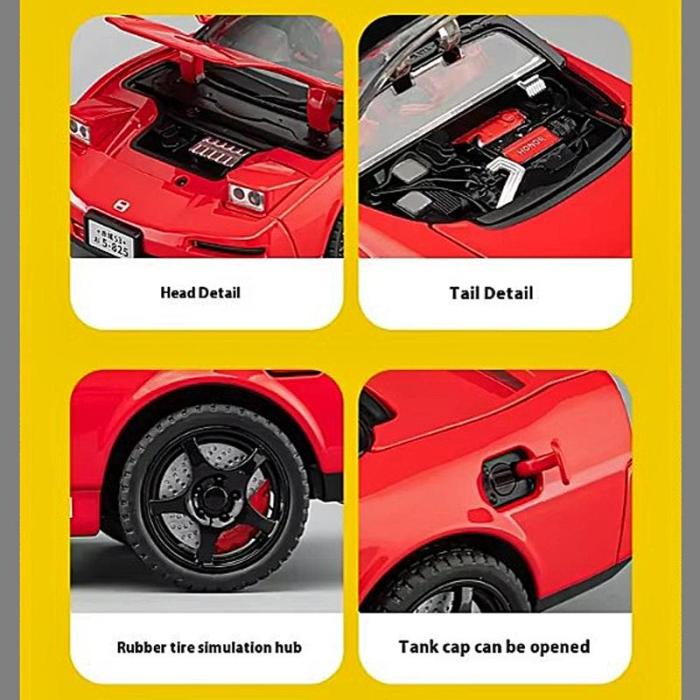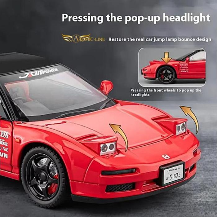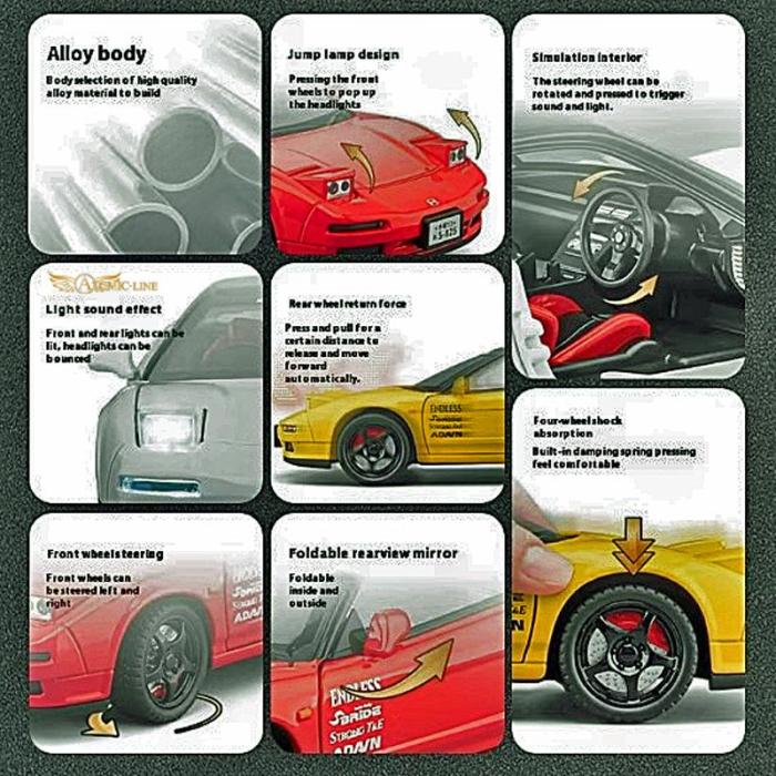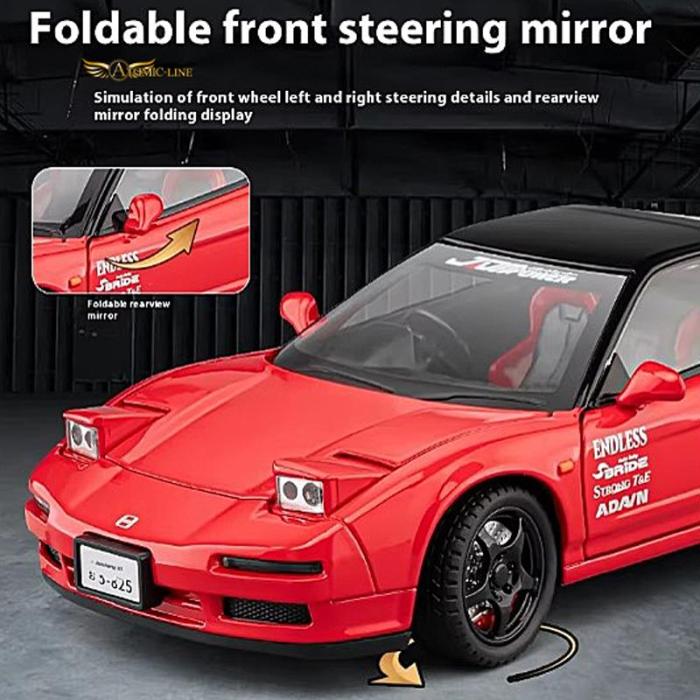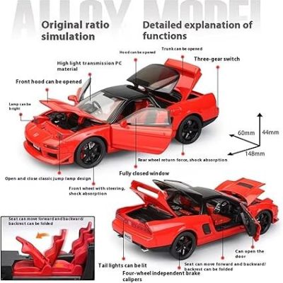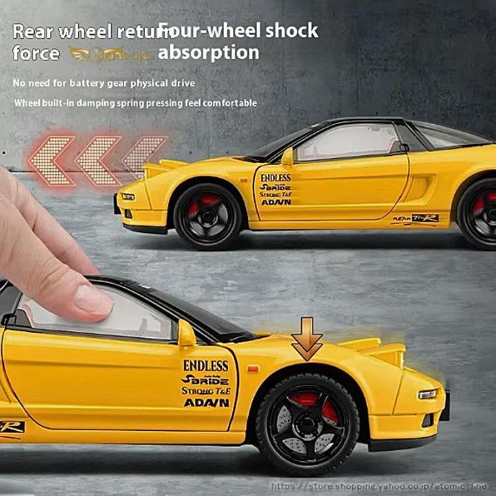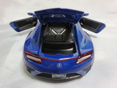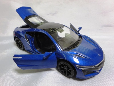 2024年8月9日からamazonで販売が開始された謎の中国製ミニカーJUANAI (ちさ) 1/32「ダイキャストカーモデル アキュラNSX シミュレーション音と光プルバックギフト」。 サービスエリアの売店やファミレスのレジで500〜980円くらいで販売されているようなレベルに見えるミニカーが4,000円以上で販売されていたので見送っていたのだが、2024年12月末現在も同じ画像を使った商品は、ヤフーショッピングで、ブラック、レッド、ホワイト、ブルーの4色が3,971円(送料無料)で販売されているものが見られる。 amazonではSHENというブランドで2,999円(送料無料・2020年3月25日取扱開始)で販売されているものが同じ商品に見えるので、そろそろ買ってみてもいいかなと思っているのだが、2017年にヤフオクにセットものが初登場し、2019年にトイザらス店頭に登場したB.A.R.T.E.R.香港LimitedがMSZ VROOM TECHブランドで1,078円で販売されたものと同じではないかと思い始め、未だに購入に至っていない。 そうこうしているうちに2024年10月22日にヤフーフリマに初登場(ヤフオクでは10月24日)したのが、上記のNC1ミニカーと同じようなギミックを持ったNA1のミニカー。 こちらも相場は4,000円前後と、上記のNC1ミニカーと同じくらいだったのだが、NC1ミニカーのように他に似たような商品はなかったので、とりあえず試しにレッドのみ、11月中旬にヤフオクで落札した。 1/32スケールで全長は約15cm、ボンネット、リトラクタブルヘッドライト、リアハッチ、両ドアが開閉。 電池(LR44ボタン電池×3個)のセーフティを解除していないので確認していないが、車体後部を下に押し込むと、ヘッドライトとテールランプが点灯し音が鳴るらしい。 確認するのを忘れたが、シートもリクライニング可能。シートが可動するNSXミニカーはおそらくこれが初。 イエロー、シルバー、ブラックを含めた全4色が用意されており、4,000円前後の価格もやむなしと思えるくらいの質感はある。 私はヤフオクで3,980円(送料無料)で入手したが、amazonでは1万円前後で販売されているものも多数あるので購入時には注意が必要(最高値は19,690円!)。 |
