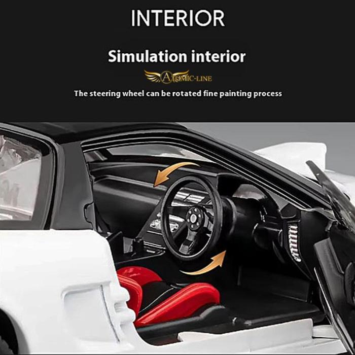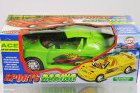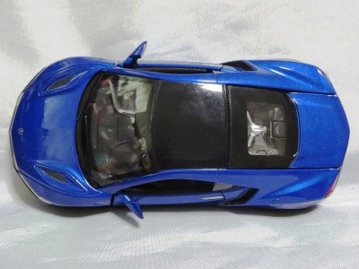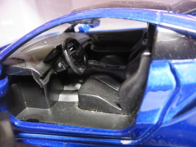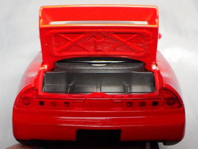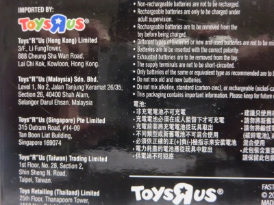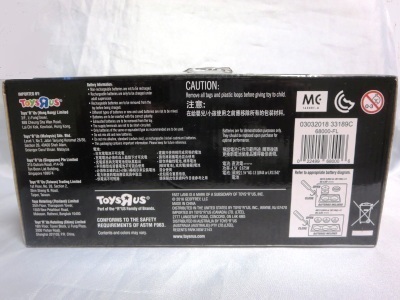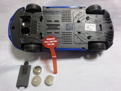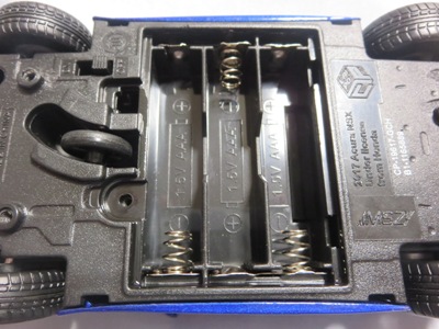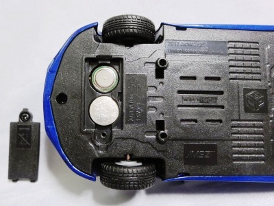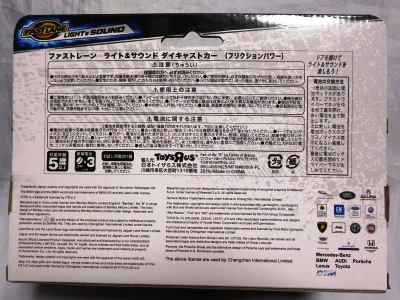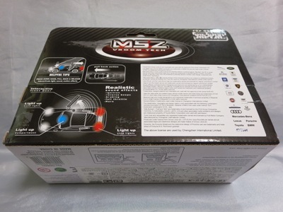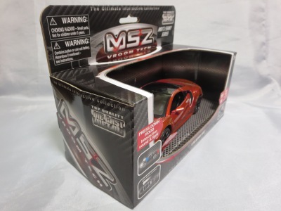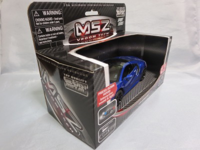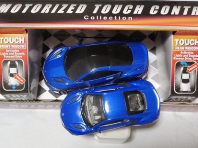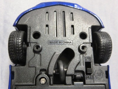 2019年3月20日にトイザらスで購入。 「モーターライズド・タッチ・コントロール」シリーズと同様に、MSZ VROOM TECH製のボディを使用して音声を発することを特徴とした商品。 トイザらスが輸入して販売しているもので、パッケージの底面にその旨を記したシールが貼られている。 パッケージ正面には1/30とプリントされているが、底面のシールには1/32という正確な縮尺が記されている。 「モーターライズド・タッチ・コントロール」シリーズとの違いは、この商品には内装が再現されており、ドアとトランクが開閉する点。ボンネットを押すと(正確にはボディのフロント部分を沈み込ませると)エンジンがかかってから急発進するまでの音が鳴りライト点灯。ドアを開けるとクラクション音とセキュリティ警報音(?)が交互に鳴りライト点灯。ライトは前後のみならずインパネも点灯する。 ブルーの方は、客の子供がいたずらしたのか、電池のストッパーが抜かれステアリングが欠品でしたが気にしないことにする。 |