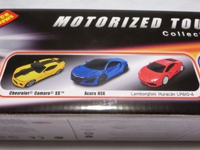 | 2017年9月16日にヤフオク初登場。シボレーカマロSS、アキュラNSX、ランボルギーニウラカン LP610-4の3台セットと、ベントレーコンチネンタルGT3、アウディR8 LMS、ランボルギーニアヴェンタドール LP700-4の3台セットの2種が存在し、これは前者。 |
