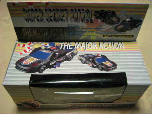 | 2004年1月にアメリカのコレクターより購入。フランスから送料込みで$350で購入したとのこと。全長30cm。ホイールとドアミラーは可動する。 | 2004年10月アメリカのコレクターより入手。全長34cm。両サイドのドアからチョロQとチョロバイのようなものが出てきたり 、リアハッチからヘリが出るといったギミックあり。中国製。 | ||