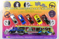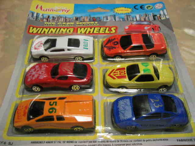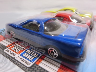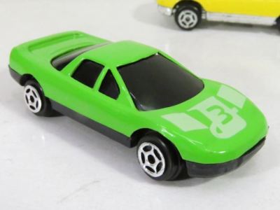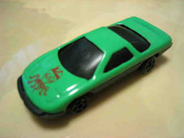 | ミニカーマガジンVol.98でも紹介された謎のトミカサイズのミニカーブランド。ダイソー5台セットの色違いということで購入するも自分の持っていたものとサイズが異なり、別のセットのものらしい。 | 2004年12月アメリカのコレクターより入手。ボンネットに「3」のタンポ。中国製。以前入手した購入した黄と赤のミニカーと同じ型で色違い。 | ||