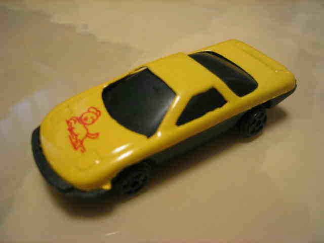 | 2004年12月アメリカのコレクターより入手。ボンネットに「6」、ルーフに「91」のタンポ。中国製。ダイソーで購入したミニカーと同じ型。カラーは赤。 | 2004年12月アメリカのコレクターより入手。チープ度はかなり高い。ボンネットにねずみのイラストをタンポ。中国製。カラーは赤。 | ||