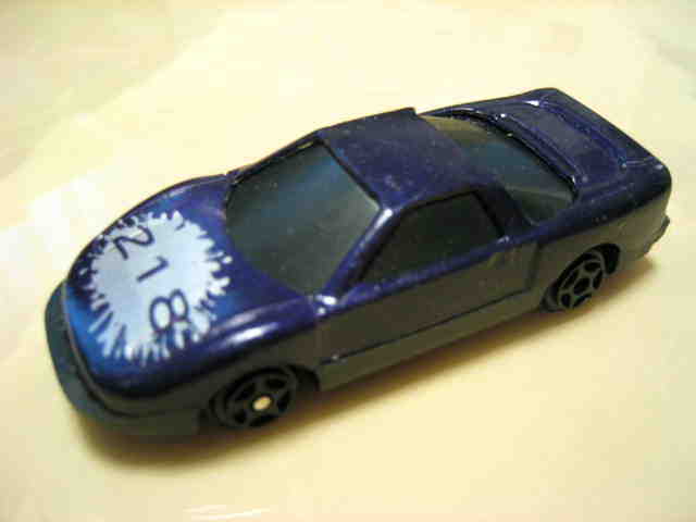 | 2014年8月アメリカのコレクターより入手。3台セットのうちブルーの車がNSX。ボンネットに「9」、ルーフに「6」のタンポ。ダイソーで購入したミニカーと同じ型。中国製。 | 2014年11月のアメリカのコレクターからのプレゼント。サントイズは香港に本部を置く玩具メーカーであると教えてくれた。 | ||