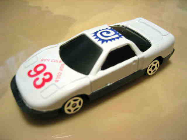 | 2004年9月フランスのコレクターより入手。シルバーの車がNSX。ボンネットに「GOLFCLUB93」、ルーフに「56」のタンポ。中国製。ダイソーで購入したミニカーと同じ型。 | 2004年12月アメリカのコレクターより入手。ボンネットに「GOLFCLUB93」、ルーフに渦巻き模様のタンポ。中国製。ダイソーで購入したミニカーと同じ型。フランスのコレクターから購入した物の色違い。カラーは白。 | ||