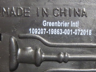 2019年7月アメリカのコレクターのトレード品として入手。 ボンネットに「9」のタンポが入ったモデルは、現在レッドと黄緑色とブルーを所有しているが(未入手ながらゴールドの存在も確認・ページ下部のWANTEDリスト参照)、ブルーは未開封の3台セットの1台として所有しているのみなので、裏板まで確認できるものは初めて。 いずれもルーフのタンポは異なっている。 今回は、裏板にナンバーがプリントされたものとされていないものの2種を送ってくれた。 まったく同じモデルだが、片方の裏板には製造番号らしきものがプリントされている。消えかかっていて見にくいが、他のモデルを参考にしたところ「Greenbrier Intl 109207-19863-001-070717」と書かれているようである。 「Greenbrier」は雑貨用品を扱うメーカーのようで、Amazonにも多数商品が掲載されている。 この2種はセットものとは別にコレクションにカウントすることに。 |