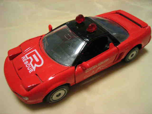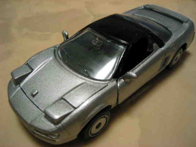 | 1/38ダイキャスト製プルバックカーで6色存在。白、黄、銀、赤は剥き出しでファミレスのレジの所などで販売され、銀のみケース入りでアミューズメント施設の景品として出回る。黒は珍しく、ブルーメタは未入手。 | 2003年1月ヤフオクにて購入。全長120mm。ヘッドライトはアップ状態で固定。両ドアとボンネットが開閉可能。裏板にPASS ASTM-F963の刻印あり。TINS'TOYSのロゴはない。 | ||