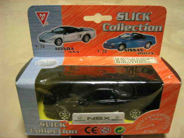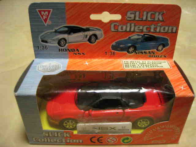 | 2006年11月フランスのコレクターより入手。裏板にTINS'TOYSのロゴがあるが、販売元が異なるようだ。パッケージでは1/36のNSX、日産300ZX、1/38のトヨタMR(MR-S)、BMW Z-3の4種を紹介している。 | 2008年4月フランスのコレクターより入手。裏板にもパッケージの裏面にもTINS'TOYSのロゴがあるが、販売元はGuiloyというスペインのメーカー。古いもので見つけるのは難しいらしい。コレクターは13ユーロで購入したとのこと。 | ||