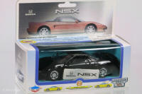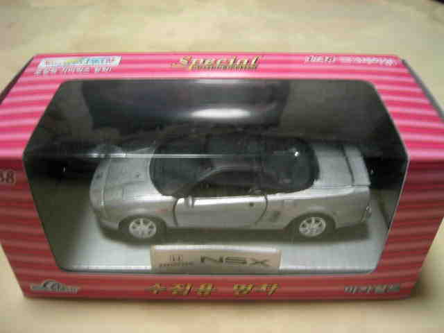 | 2004年8月ヤフオクにて購入。TINSTOYSの1/38ダイキャスト製プルバックカーの韓国版パッケージ。ハングル文字が各所に見られる。 | 2006年11月フランスのコレクターより入手。裏板にTINS'TOYSのロゴがあるが、販売元が異なるようだ。パッケージでは1/36のNSX、日産300ZX、1/38のトヨタMR(MR-S)、BMW Z-3の4種を紹介している。 | ||